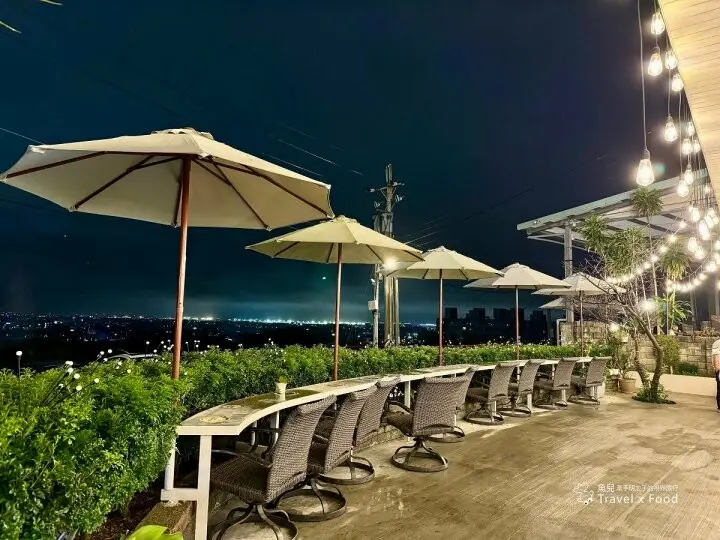 天色漸暗,燈光漸亮,伴隨著夕陽餘暉照映,美不勝收,誰能想到鄰近都市的山腳下能有這麼一處登高望遠的景觀餐廳呢?