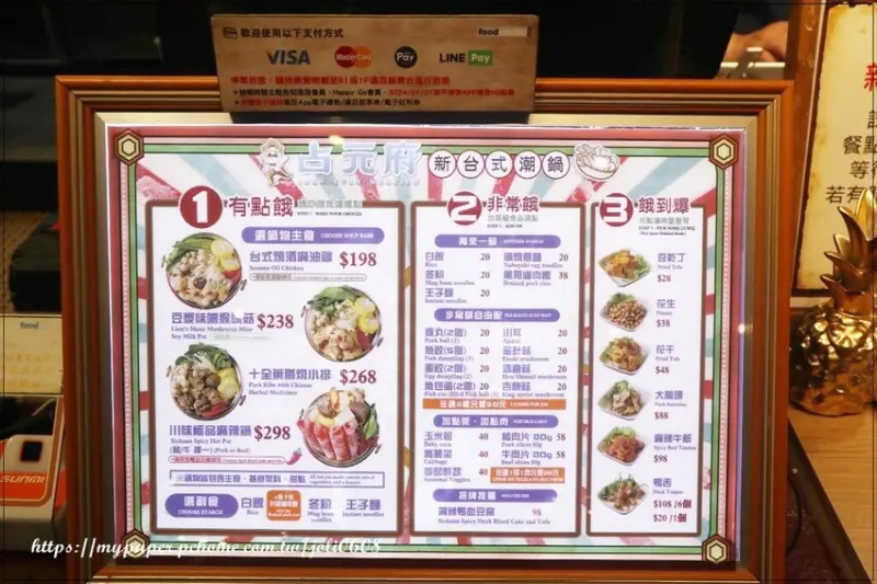 鍋物皆包含主食、基底菜料、副食、甜點等