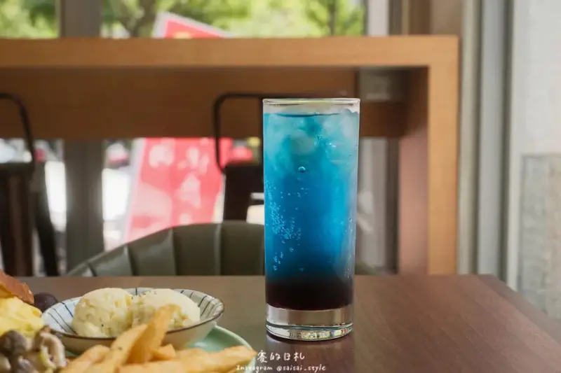 藍柑橘蔓越莓氣泡飲擁有美麗的漸層色彩,喝起來酸甜適中,特別適合中午搭配餐點飲用。而豆漿則是微糖口味,清爽不甜膩,也是我非常喜歡的飲品之一。