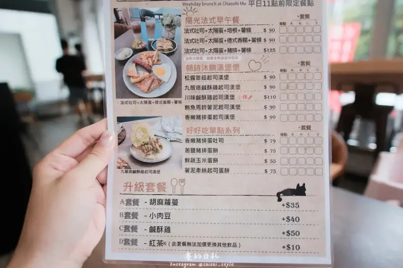 菜單部分,店家提供的餐點種類相當多樣化,無論是西式早餐或是中式午餐,都可以加價升級成套餐。這樣的設計讓來這裡的客人可以根據自己的喜好,隨心選擇想吃的餐點。