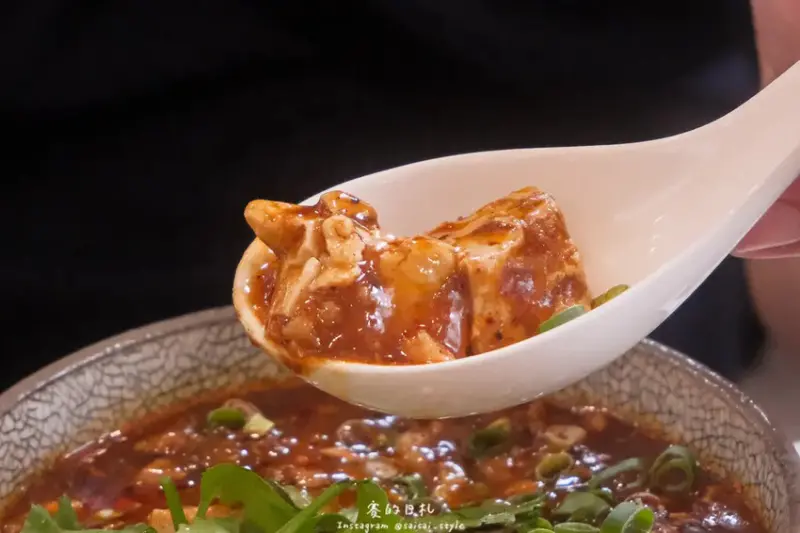 這道麻婆豆腐的製作方式和一般台式麻婆豆腐略有不同,味道略帶麻辣,但不會過於刺激,花椒香氣比較濃郁。