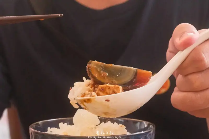 搭配上特製的皮蛋,發現豆腐與皮蛋竟然是意想不到的絕佳組合。皮蛋的Q彈口感加上豆腐的細滑,讓整道菜非常下飯。