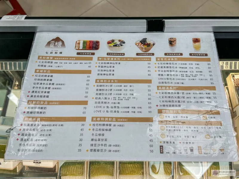 除了新品外,店內還有販售粉粿盤、飲品、茶飲、仙草凍飲、刨冰、雪花冰、甜湯等,價位大約落在30到99元之間,選擇非常豐富。