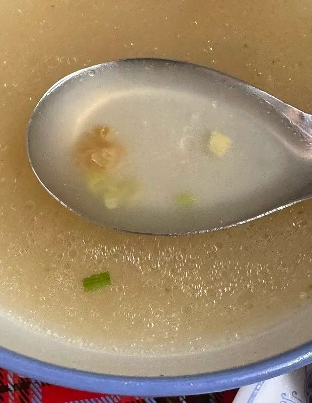 湯頭是用煮白斬雞的湯混合煮麵的湯,再加入基隆湯品很愛的冬菜和芹菜末,最後淋上幾滴香油。對於曾是基隆人的我來說,這碗湯喝下去真是一種滿滿的鄉愁。