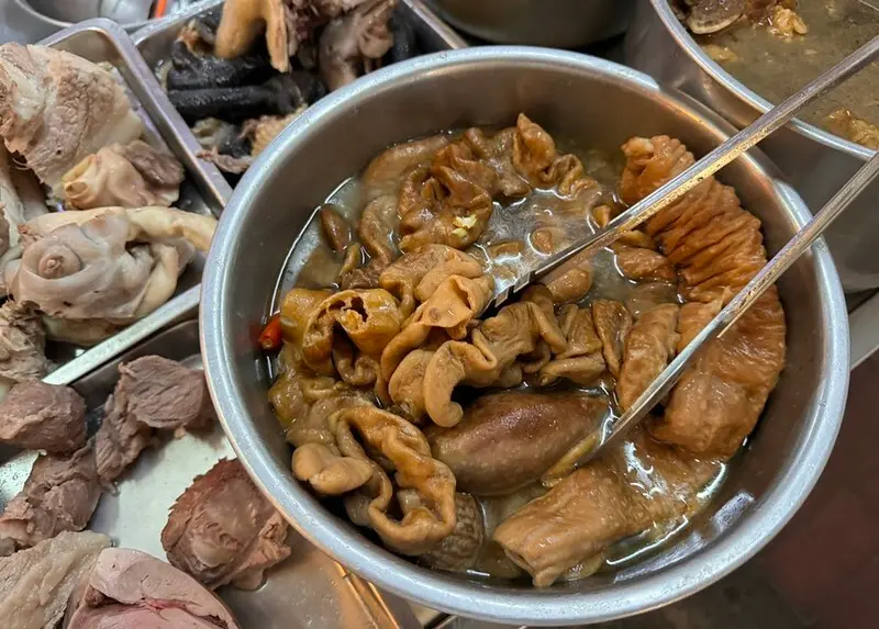 至於滷大腸,這裡的做法比較清淡,腸子本身的味道反而更突出,加上滷汁的甜味剛好入味,口感脆中帶糯,再配上一點薑絲,哪怕不沾醬也很順口。