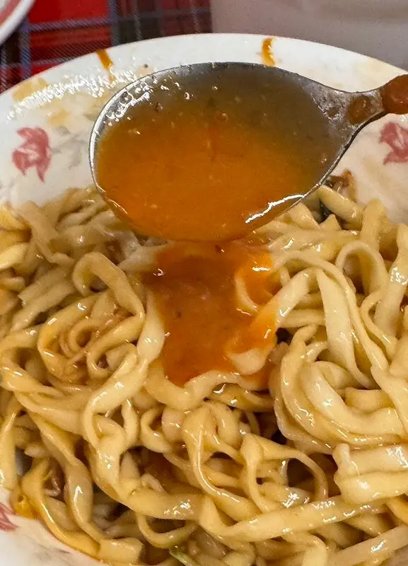 我個人的吃法是前半碗保持原味,過半後再加上滷味和黑白切,味道變重後再加點辣椒醬,這樣一碗乾麵就有兩種風味,讓人心滿意足。