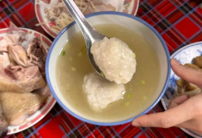 最後是福州魚丸湯,應該是隔壁黃小妹家的,魚丸個頭很大,魚漿偏軟,內餡吃起來有點像基隆名物「豆干包」。