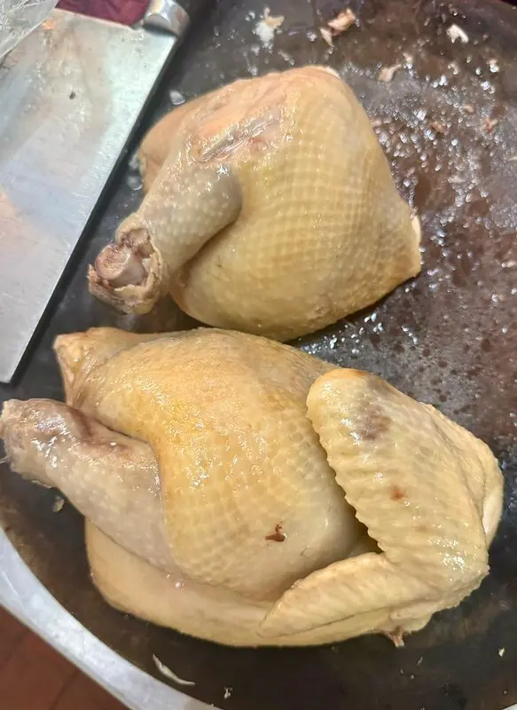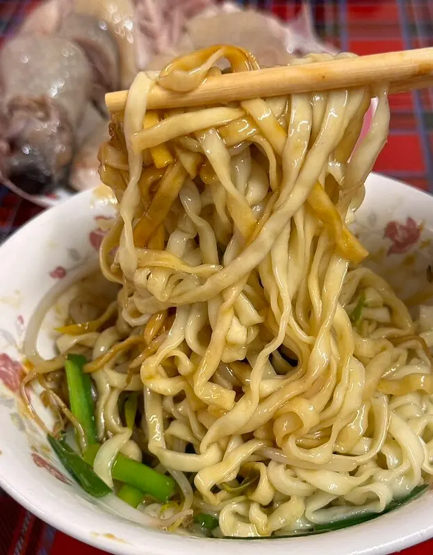 通常我來這裡除了乾麵外,還會點一盤白斬雞。那天排在我前面的一位媽媽把剩下的半隻雞全打包,讓我心驚膽跳,還好沒多久阿公又從後面拿出一隻新鮮的雞,這也說明這家生意真的很好,一天準備的雞絕不只一隻。