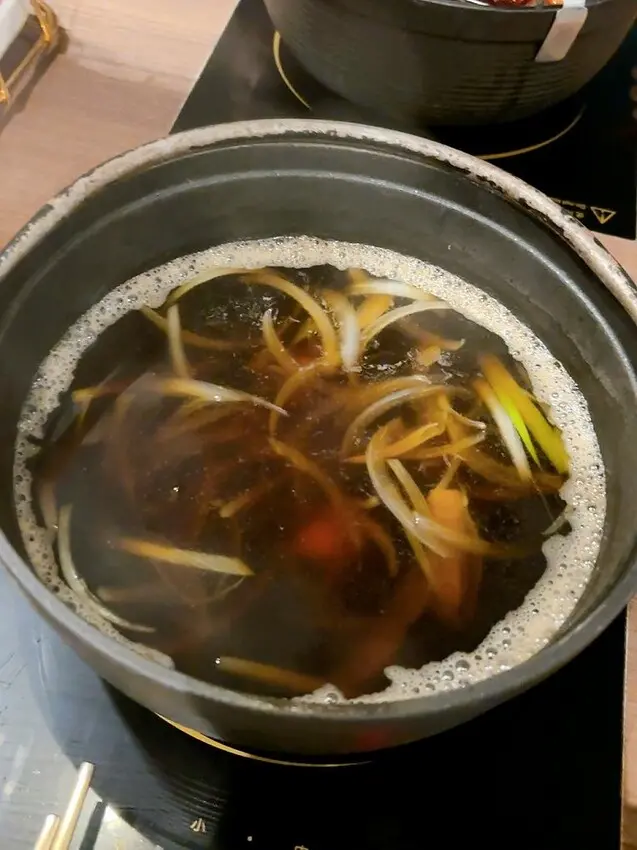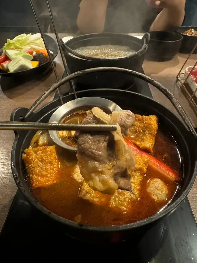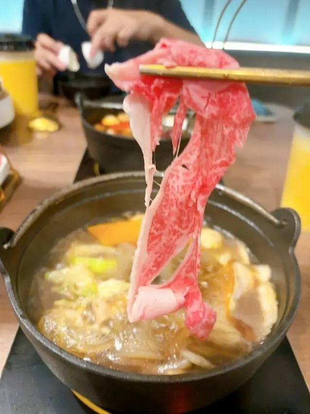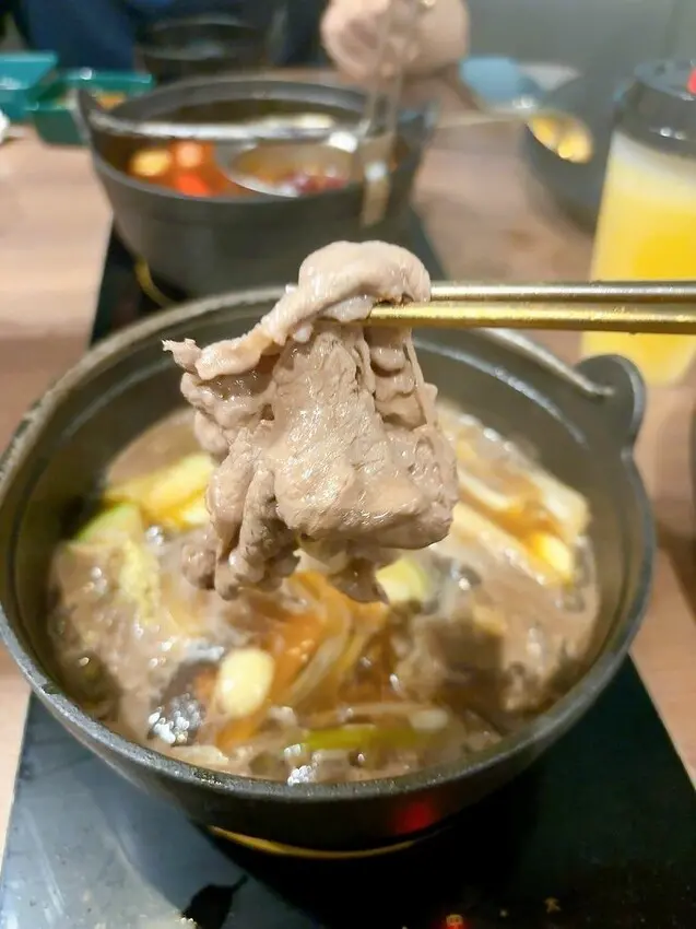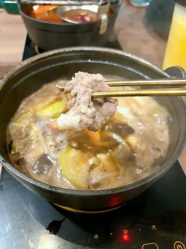 這款湯頭以甜中帶鹹著稱,加入大量洋蔥增添清甜氣息。當肉片或蔬菜下鍋,湯汁漸漸滲入食材,讓每一口都充滿濃郁鹹甜的滋味。湯底滑順,香氣四溢,每口湯都令人滿足至極。