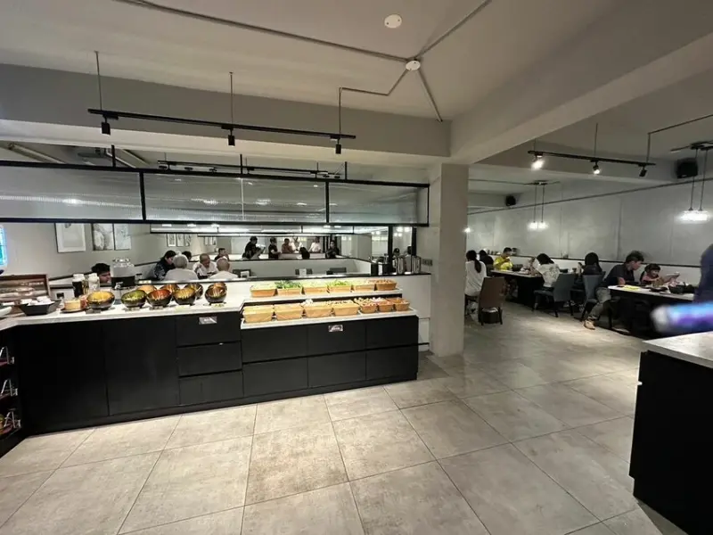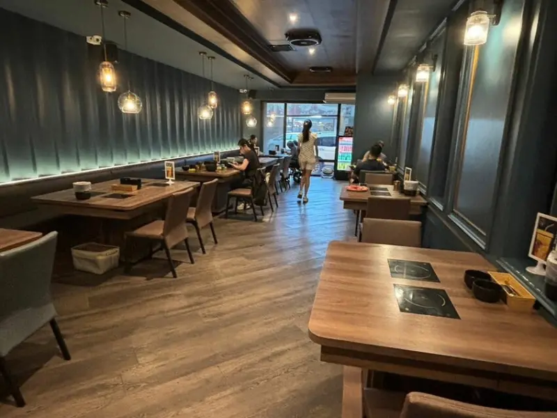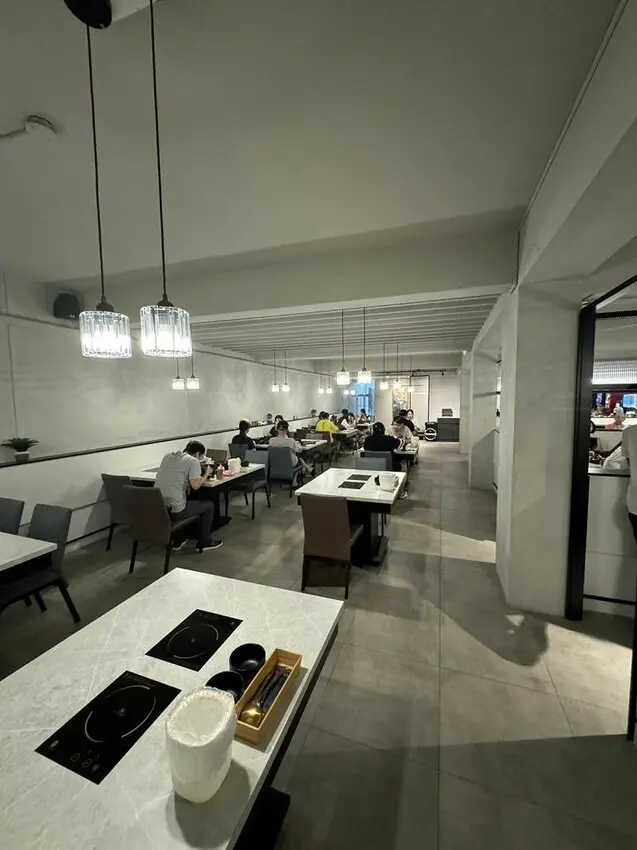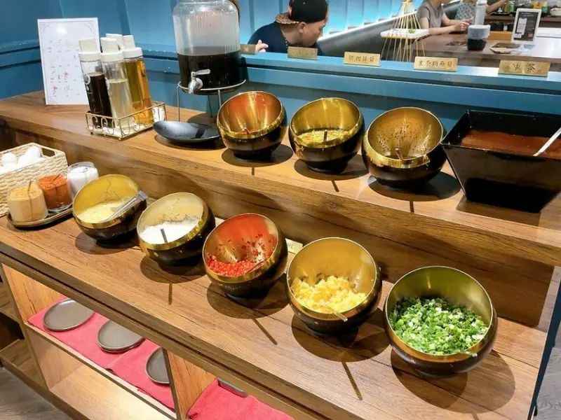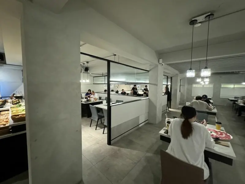 一樓用餐區左右兩側的用餐空間設計寬敞,桌與桌之間保有足夠的距離,動線流暢。沿著動線走到底,可以找到醬料區、火鍋料自助吧、副餐區以及飲料甜點區。