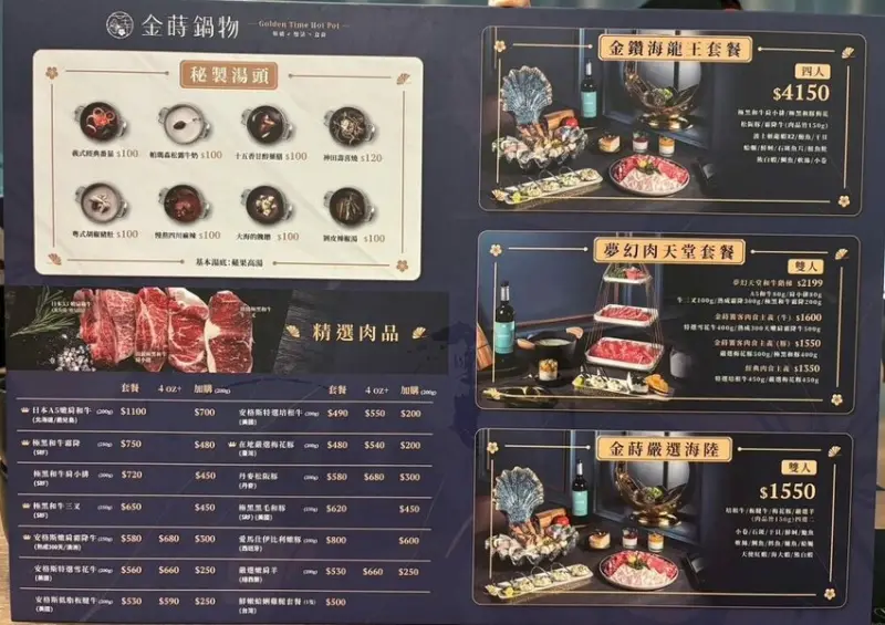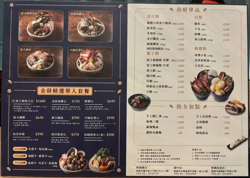 金蒔鍋物―桃園大竹總店提供多樣化的套餐選擇,不論是愛吃肉、愛吃海鮮,還是想要肉類與海鮮雙拼,都能找到適合自己的搭配。