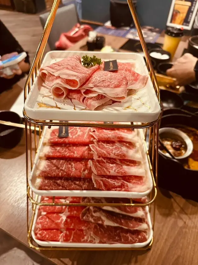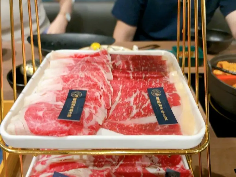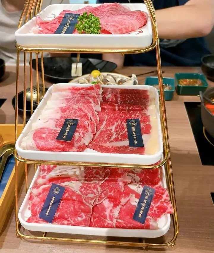 日本A5嫩肩和牛:油花分布均勻,輕涮即熟,入口即化,油脂香氣充滿整個口腔,令人回味無窮。