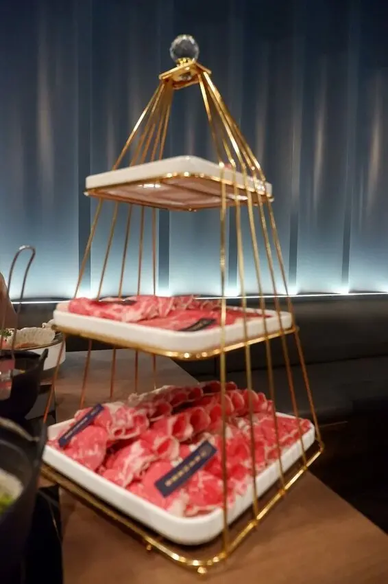 這是一座由五種牛肉堆疊而成的肉片金字塔,一上桌視覺效果震撼十足,我們忍不住“WOW”了一聲!