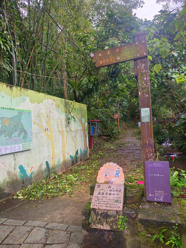 在這裡,虎山步道的慈惠堂登山口設有一個指示牌,對於第一次來爬山的新手來說,這些路標真的是一大幫助,讓我們能快速了解沿途的景點與步道資訊。