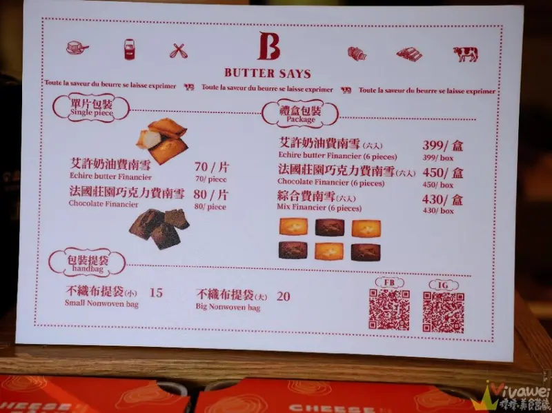 新竹市美食「ButterSays」到新竹巨城快閃啦,日期是2024年11月25日至2025年1月2日,短短一個多月的時間大家可要好好保握喔!除了現烤的費南雪以外,還有同步販售姐妹品牌CheeseTalk的達茲和曲奇餅喔,無論要買來自己吃或是當伴手禮及聖誕節交換禮物送人都很適合呢!文章內有店家地址、電話、營業時間、完整菜單價目表MENU供參考!