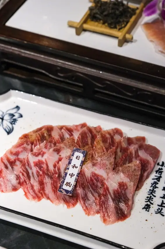 套餐裡有富貴雙方、霜降肩夾牛、M9澳和眼蓋、和牛雪花牛排、松阪豬、日本花和牛、大拌菜、石頭蝦、冷泡金萱、可爾必思、水果聖代及手工奶酪![]()