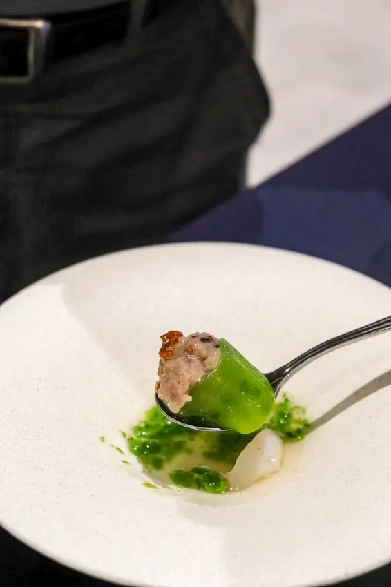 新鮮角瓜搭配豬絞肉及菠菜泥加上鮮甜松葉蟹一起入口