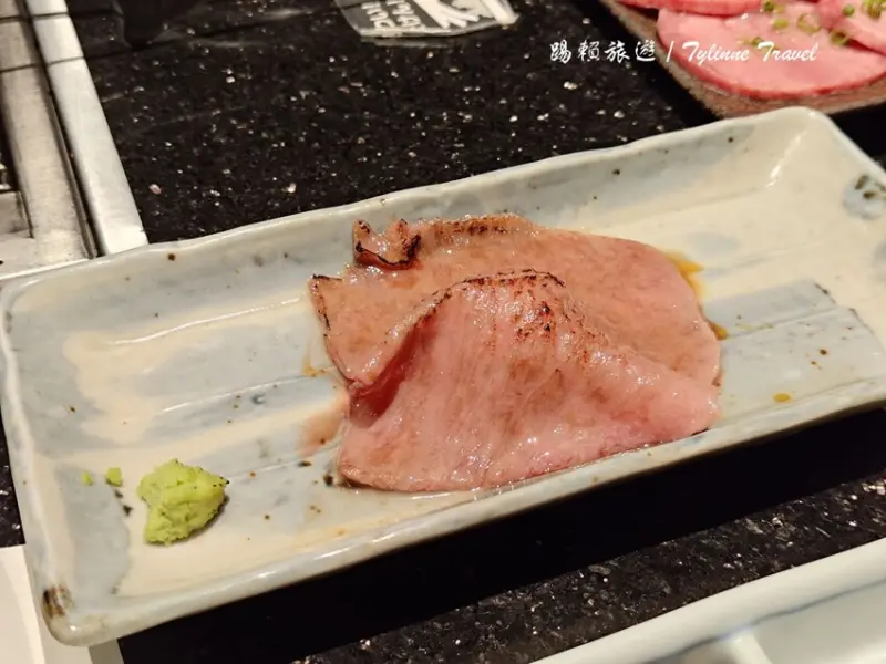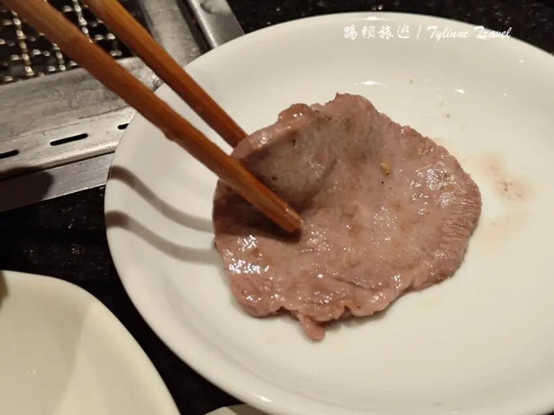牛舌切得厚薄適中,烤至五分熟的狀態口感最佳。牛舌帶有鮮甜的肉汁,咬起來還帶有一點脆度