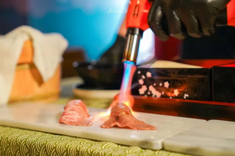 這部位的和牛因剖面像刀而得名,屬於腿肉部分,肉質緊實且帶有豐富的油香。透過咀嚼,能感受到和牛獨特的油脂香氣與濃郁風味,每一口都是一場味覺的盛宴。