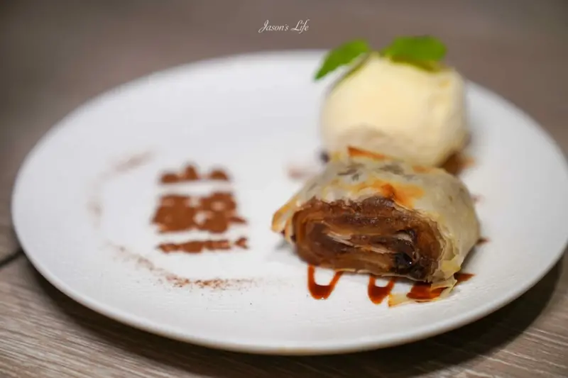 這款甜點需要額外加價,但絕對值得品嚐。自製蘋果派帶有淡淡的肉桂香,搭配香草冰淇淋,甜而不膩,讓整頓餐點有一個完美的結尾。