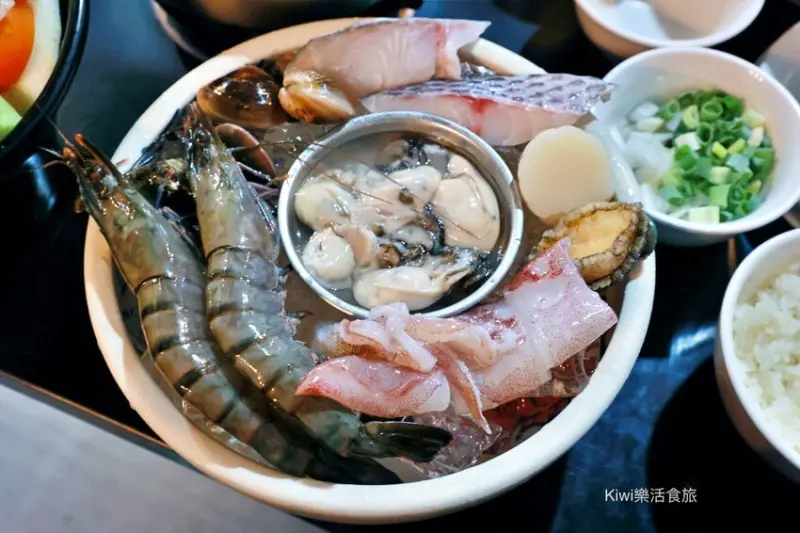 海鮮部分,老闆給得非常大方,包括大蝦、蛤蠣、魚片、蚵仔。還有干貝、九孔、小卷等,每樣海鮮都能看出老闆的用心挑選,新鮮度絕對一流。