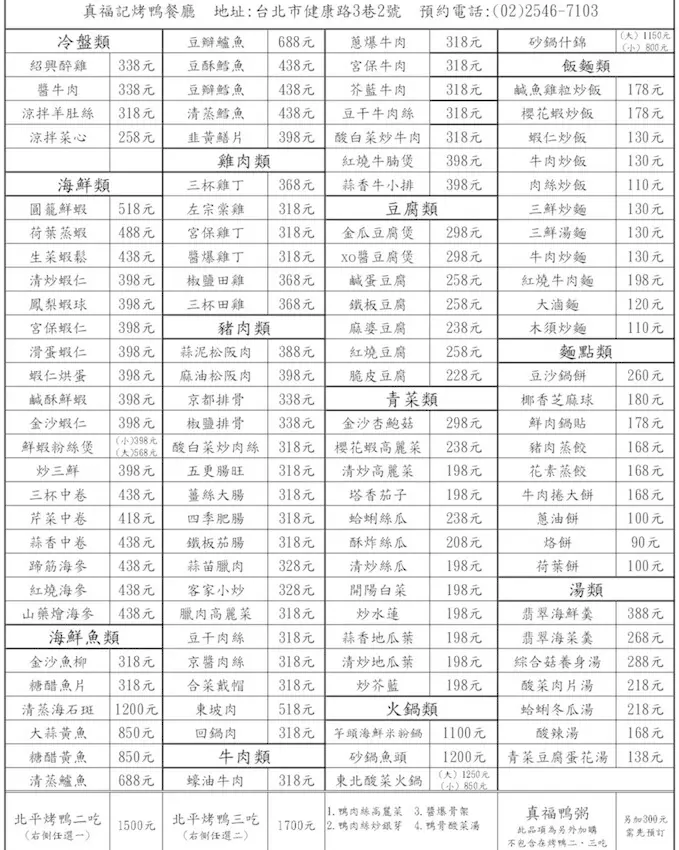 說到台北的烤鴨餐廳,「真福記脆皮烤鴨餐廳」絕對是榜上有名!這家老字號北平烤鴨餐廳,不僅以脆皮烤鴨聞名,還提供豐富的北方菜系合菜料理,價格親民又適合聚餐。特別是店內的烤鴨三吃,根本就是每次造訪必點的經典招牌!