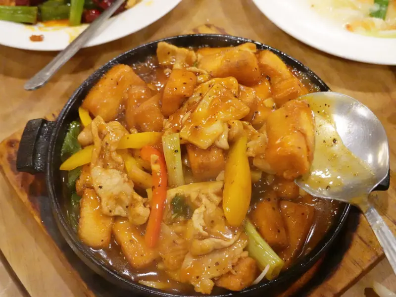 還有鐵板豆腐、蔥爆牛肉等熱炒,份量足夠,味道濃郁超下飯!