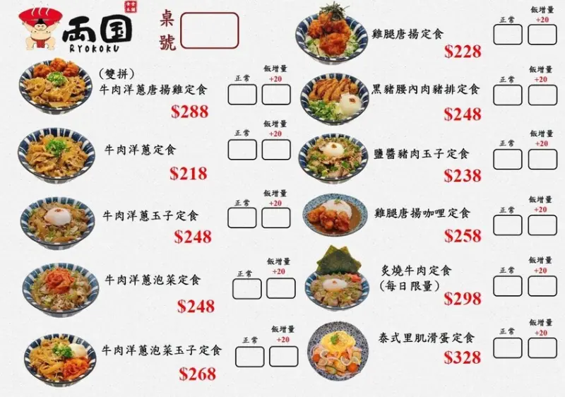 ▲▼員林必吃両国(兩國)相撲豬排日本大眾食堂菜單MENU(外帶)![]()