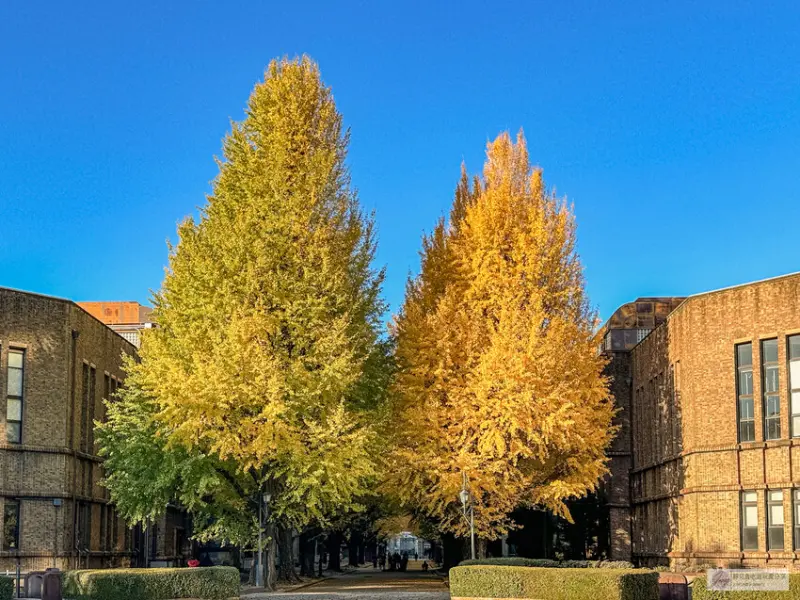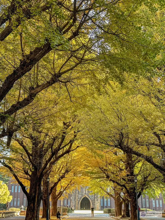 本鄉校區內的銀杏樹數量非常多,兩旁的樹影搭配歐式風格建築,尤其是百年歷史的「安田講堂」,真的是拍照絕佳地點!