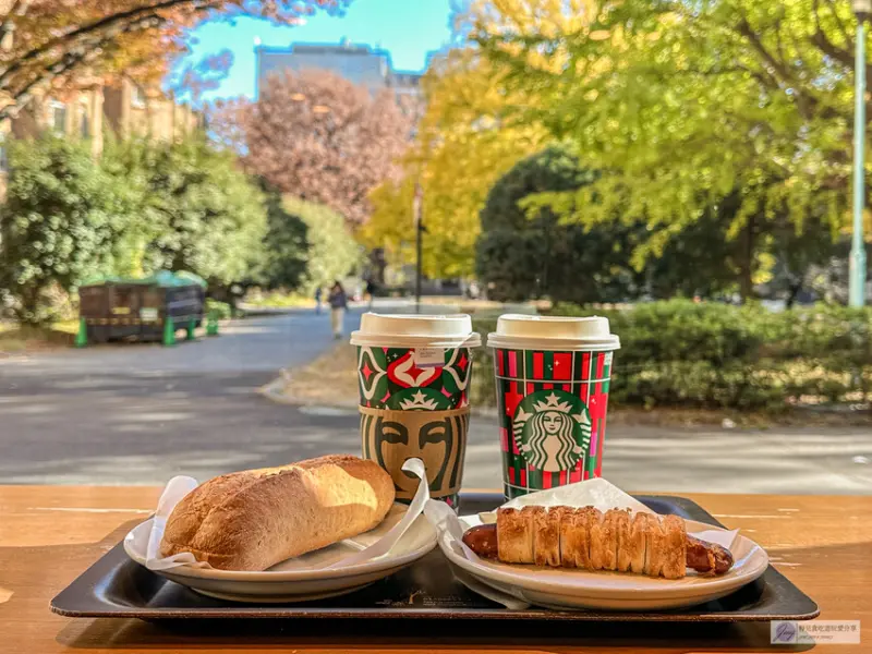拍完銀杏後,可以直接去星巴克買杯熱飲,坐在銀杏樹下享用早餐,這氛圍真的無敵療癒。
