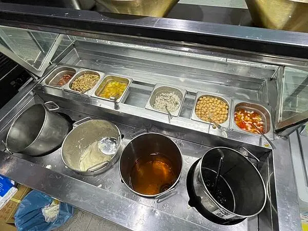 雖然店家網站寫的提供紅茶跟奶茶,但哪奶茶喝起來像紅茶+豆漿,旁邊還有持續保溫的珍珠,只是沒有小湯匙,你只能將飲料喝光才能吃到珍珠,因為喝湯的湯匙太大,無法使用湯匙來吃珍珠,但珍珠口感還不錯。