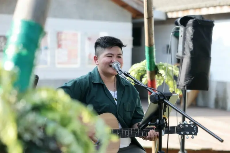 街頭藝人阿甘以動人的歌聲,為聚落增添音樂氛圍。在欣賞文化的同時,感受音樂的深情觸動,讓旅程更具感性。