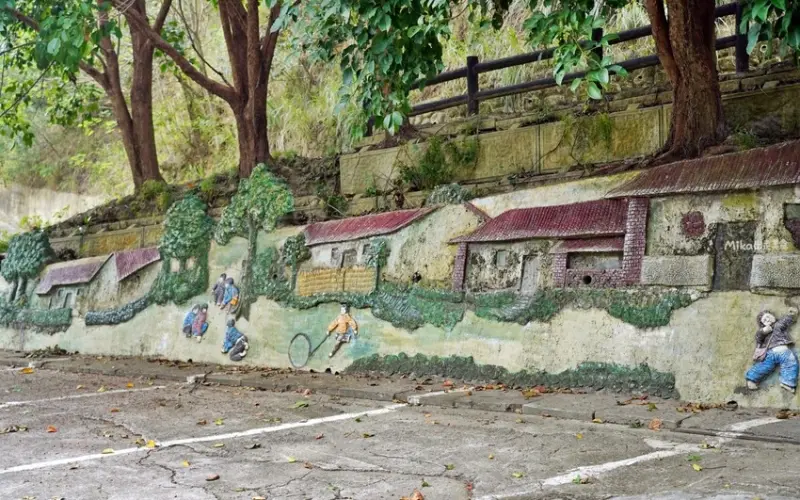 這裡有個特別的地方,就是牆上的壁畫,還是老闆娘親手畫的喔!這些畫作承載著她童年時的記憶,三合院的村落景象和當時的童玩,讓整個地方充滿了溫馨的故事感。每一個細節都透露出老闆娘對這片土地的愛與回憶。