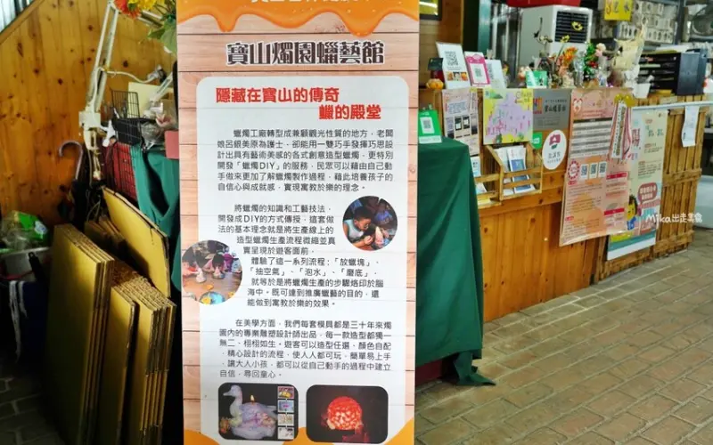 這裡本來是蠟燭工廠,但隨著時間推移,它漸漸變成了結合觀光的場所。由於位置稍微隱密,所以它也成為了寶山的「隱藏版景點」,像是蠟燭的殿堂,讓你在這裡可以一邊玩,一邊學,甚至帶著一個滿滿的創意體驗回家!![]()