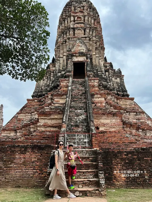 「柴瓦塔那蘭寺」是1630年由大城王國的巴薩通王為紀念母親所建,整體設計以高棉風格為主,因此讓人有種走進小吳哥窟的錯覺。這裡是大城保存最完整的遺跡之一,更是泰劇《天生一對》的取景地。當初就是因為這部劇,我才對大城產生濃厚興趣,今天總算如願以償!