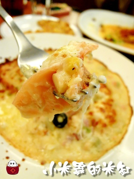 剛上桌的時候,表面熱騰騰的,都可以看到起司像熔漿似的在滾滾沸騰~