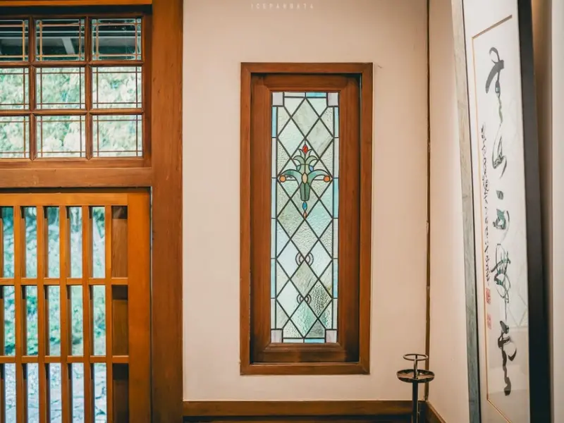 這裡的每一處細節都展現了日式文化與藝術的融合,從馬賽克地磚到色繪玻璃窗,從書案擺飾到互動遊戲,每一處都讓人驚嘆不已。拘那院內的大名轎子和透空欄間的精湛雕刻,讓人感受到深厚的歷史和文化底蘊。