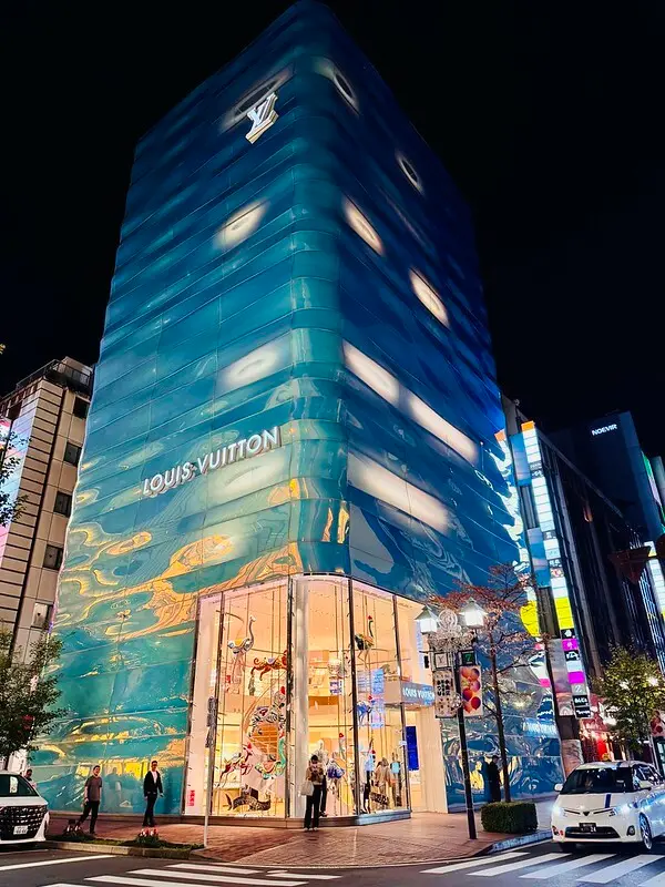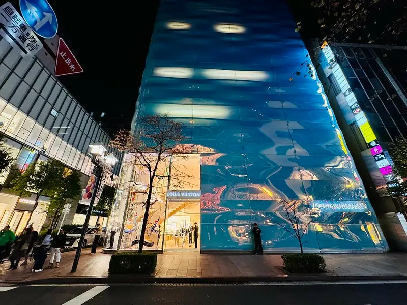 那晚,抵達Louis Vuitton 銀座旗艦店時瞧見一條排隊的人龍,
