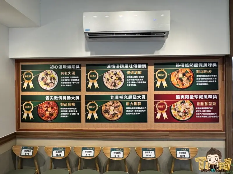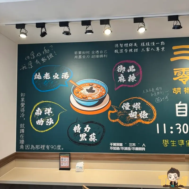 店內復刻校園的風格,牆上的黑板有湯底口味和菜名。
