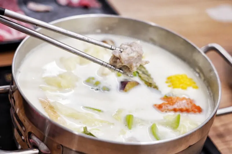 牛奶鍋真的一點都不隨便,直接一給你整瓶鮮奶!自己現場熬煮,肯定是濃醇到不行,牛奶湯溫潤奶香味十足,這鍋交給閨蜜吃~
