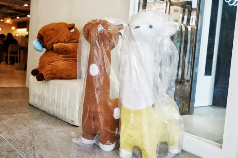 現場還可以加價超大的草泥馬!草泥馬大的可以當成椅子坐,好像只要加購700元,很多上面都貼上已訂購~