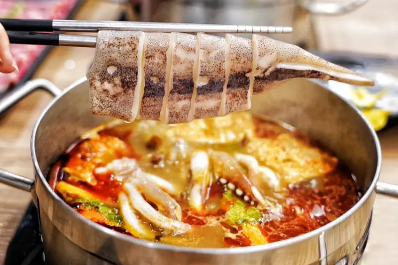 魷魚圈肉質肥美,鬍鬚吃起來很有彈性,尾巴稍微要咀嚼,魷魚拿來煮麻辣好對味~