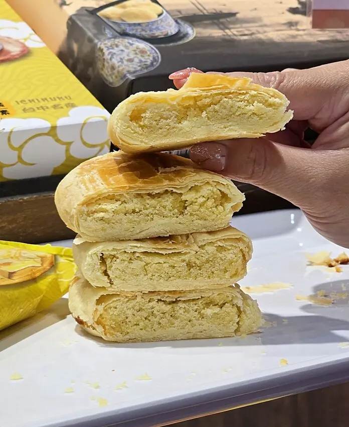 入嘴外皮酥香有著淡淡的奶香氣,細細品嘗那淡淡的豬油香環繞舌尖,因為太酥了會不停的掉餅屑,並且吃得到傳統麥芽香,微微的甜卻不膩嘴的涮嘴!!