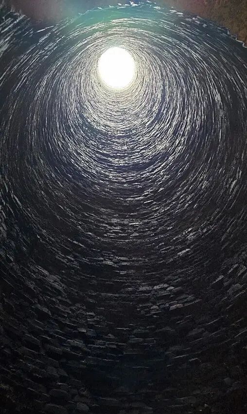 走到隧道的盡頭,抬頭往上看就是煙囪,也有點像似天井的感覺,很特別、也很建議大家親自來走上一趟!