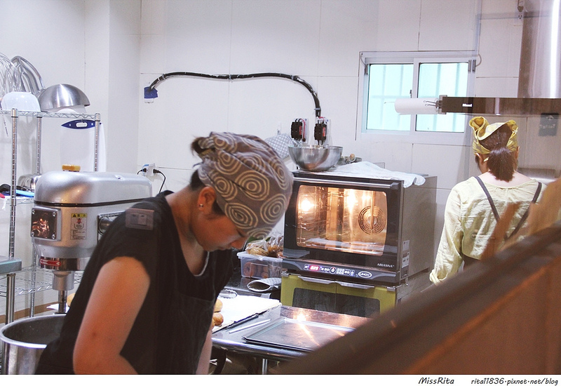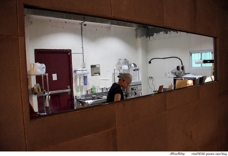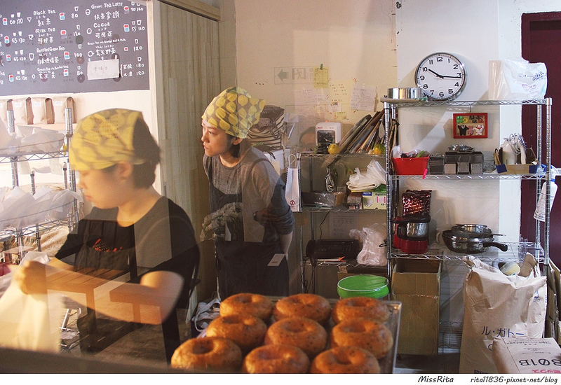 廚房則是在一道牆的另一端,可以清楚的看到裡頭的員工是怎麼製做甜甜圈的~