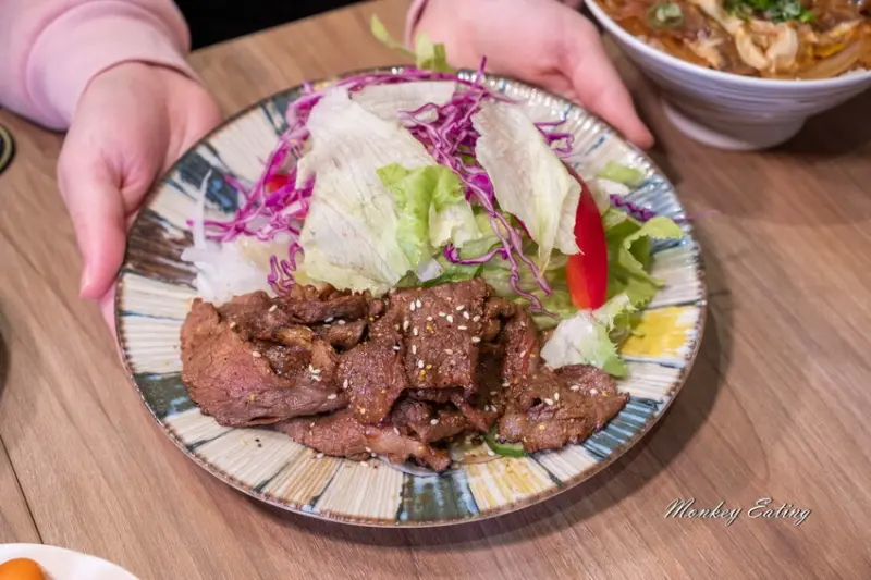 看看這盤牛五花燒肉沙拉,肉量就是給這麼多真的很浮誇阿~燒肉本身有醬汁的鹹香味,配上清爽的生菜沙拉也很搭。