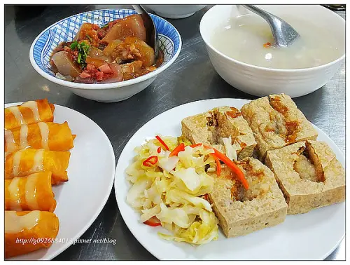 這間大概是早上七點賣到下午四點左右,開了大概30幾年有了吧.從騎樓的路邊攤位換到巷底店面,又換到現今店面好幾年,有嘴邊肉.豆腐.豬皮.脆腸等小菜可以切,熱呼呼的米粉湯滋味佳&我喜歡吃乾的米苔目 ^^