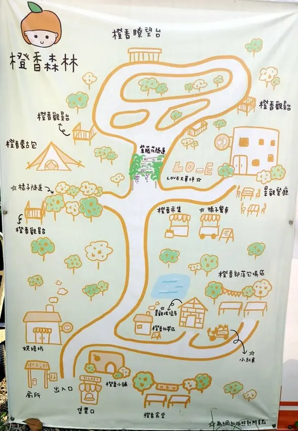 ▼園區內除了大片的橘子園,也貼心設計了很多的拍照打卡點,在入口處的地圖建議拍起來,到園區再慢慢探索。