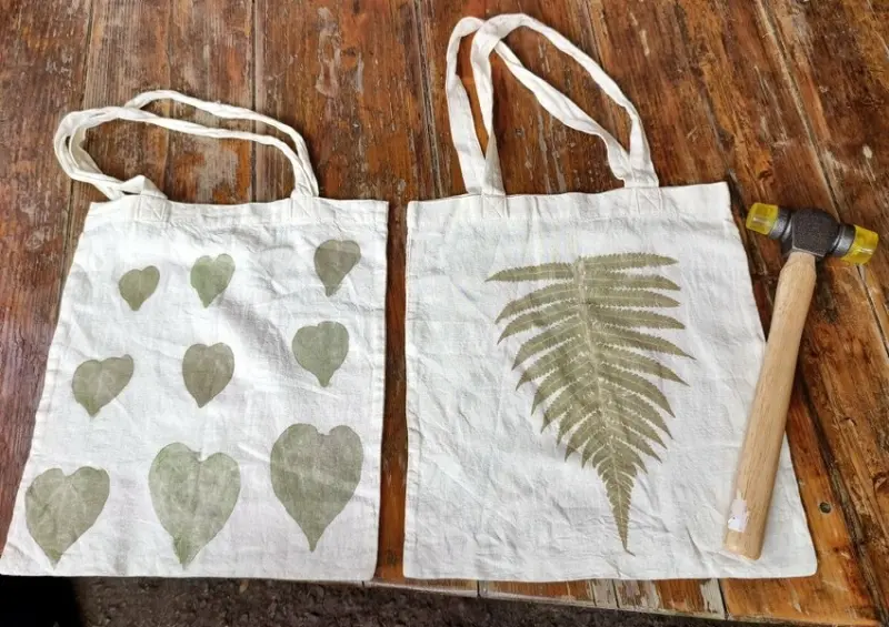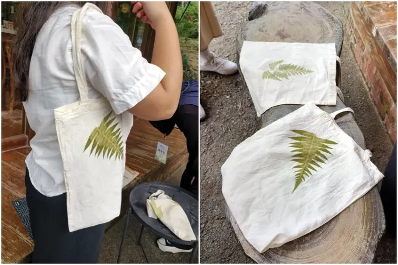 ▼槌染體驗組使用在地植物素材來製作,成品包含槌染帆布袋一個,也適合親子共同體驗喔!