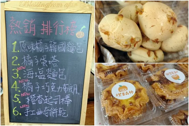 ▼這裡有多款自家研發的點心,最有名的就是橙香韓國麵包、橙香蛋塔,另外也有餅乾、麵包、橙香起司棒等點心。